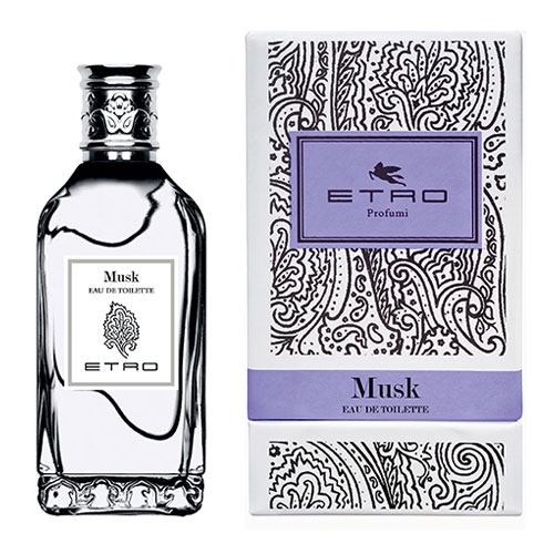 Etro Musk si apre con note fresche e pulite di agrumi, Bergamotto e Pompelmo, uniti a Verbena; il cuore di fiori di Mughetto e Rosa Bianca si fonde con legni caldi e pregiati di Sandalo, Guaiaco e Cedro; la scia è dolce e delicata grazie al Legno di Sandalo indiano e a muschi.
