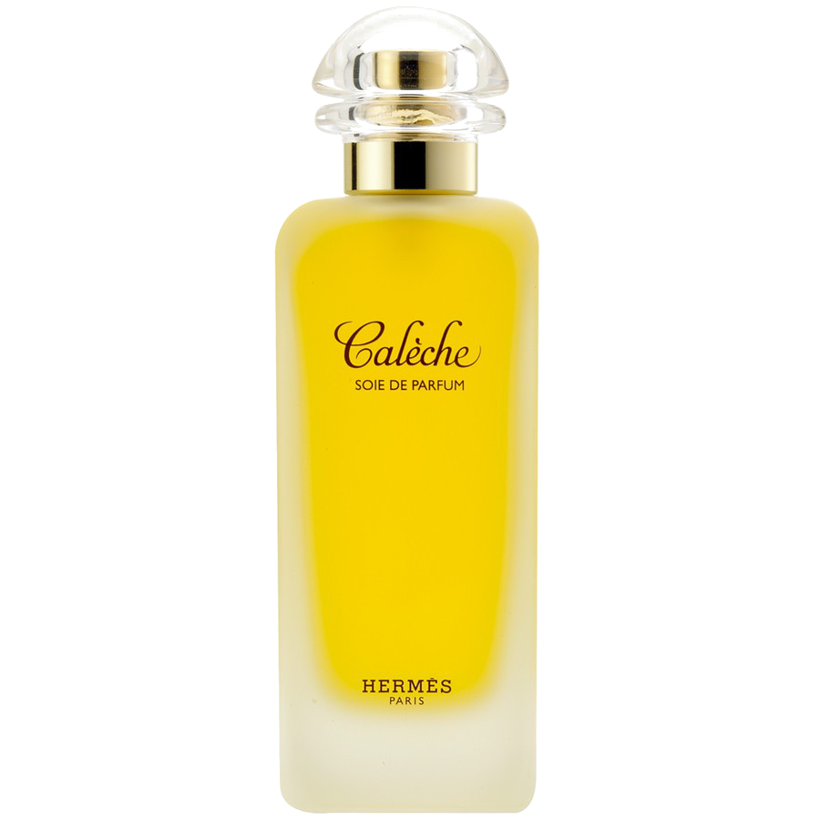 calèche fù lanciato da hermes nel 1961 e per molti anni è stato la loro fragranza femminile più venduta. è stato creato dal naso guy robert, e comprende bergamotto, mandarino, fiori d’arancio, aldeidi, gelsomino, mughetto, rosa, gardenia, iris, ylang-ylang, quercia, sandalo, cedro e vetiver. nel 1992, viene lanciato il profumo da donna hermées calèche soie de parfum, una versione riformulata che si rivolge ad una donna più giovane e moderna. la soie de parfum ha un inizio un po’ aspro che nel giro di pochi minuti svanisce, con una breve apparizione di bergamotto e fiori d’arancio. in fondo, l’iris e legno di sandalo si intensificano, dando una fine liscia, setosa e cipriata. nonostante la riformulazione, l’eau de parfum hermés calèche ha uno stile antico, ma a differenza di alcuni dei classici aldeidici floreali, non si sente fuori luogo per l’abbigliamento casual.