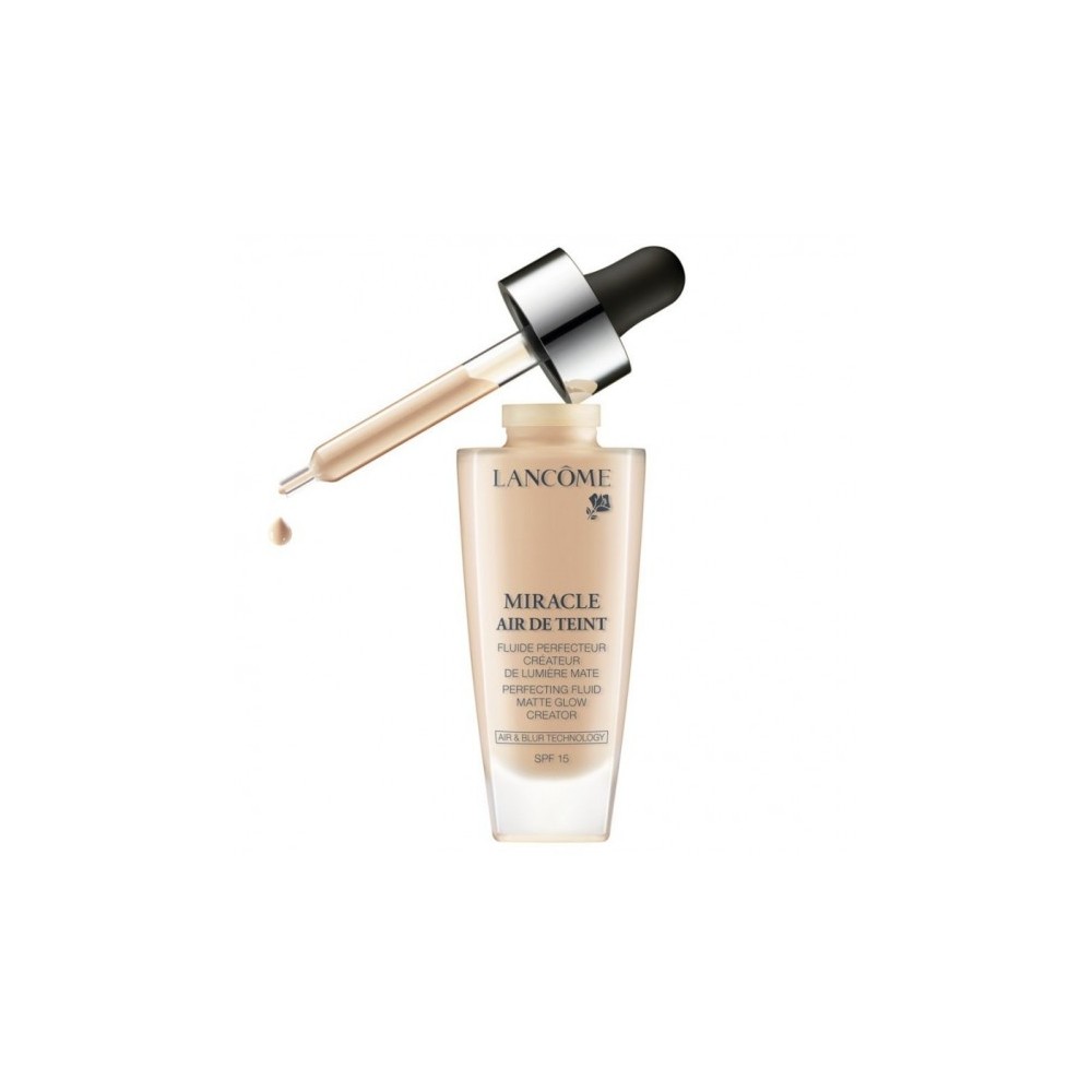 Miracle Air de Teint il primo fondotinta fluido sublimatore di Lancome leggero come l’aria, per un effetto cos naturale da essere invisibile.Per la prima volta Lancome incorpora in un fondotinta una cipria e un agente sfumante per creare una nuova formula dalla leggerezza inedita. MODO D’USO: Preleva una goccia di Miracle Air de Teint e applicala con le dita, dal centro del viso verso l’esterno. La sua texture unica si stende facilmente e offre un risultato dall’effetto naturale. RISULTATI: Coprenza in tutta leggerezza Attenua la visibilit delle imperfezioni Incarnato mat e trasparente Pelle uniforme e radiosa.