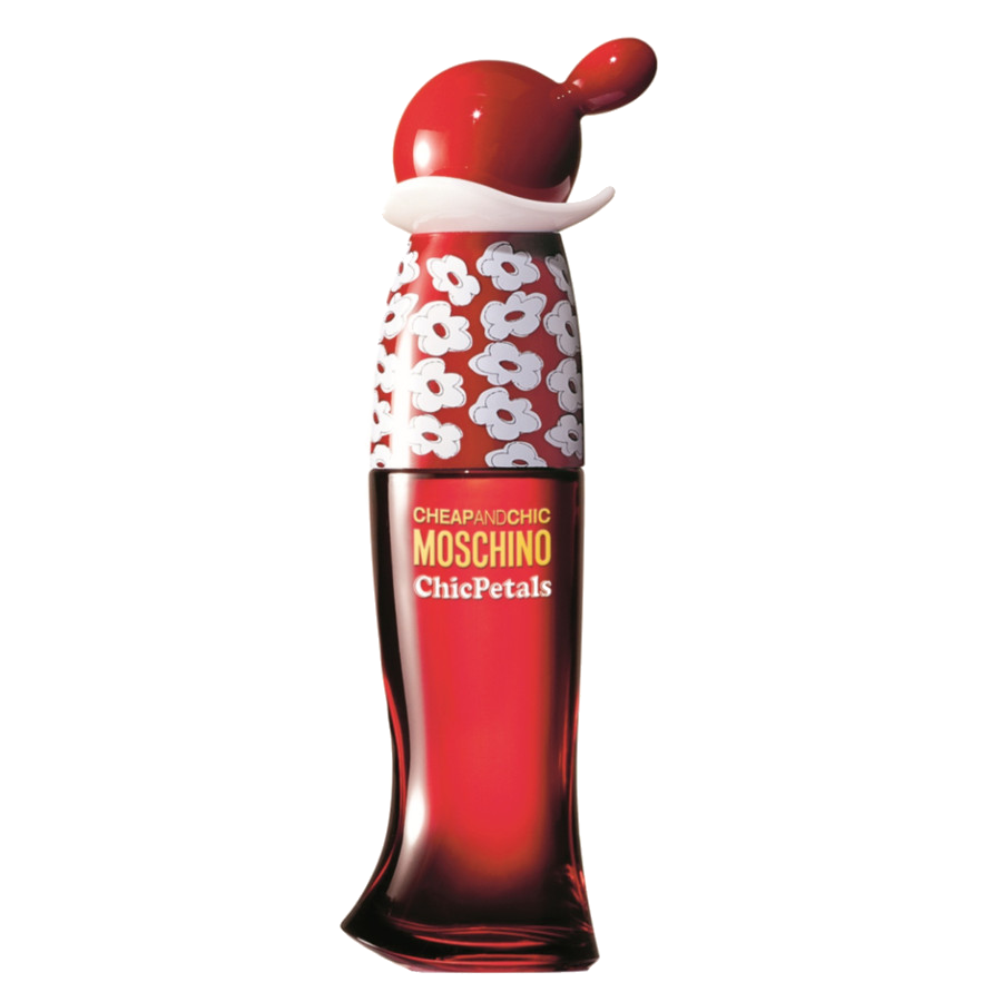 Cheap & Chic ChicPetals è la nuova fragranza Moschino in uscita a fine giugno 2013, che si aggiunge alla collezione Cheap&Chic ispirata al personaggio dei cartoni animati Olivia Oyl. E’ una fragranza floreale-fruttata dai sapori intensi: in apertura succose fragole selvatiche e melograno unite allo zenzero rosso, un cuore di orchidea rossa, gardenia e ninfee per giungere ad un fondo sensuale di muschio, Iris italiano e legno di Hinoki. Il flacone riprende la simpatica forma dalla fattezze di Olivia in un color rosso brillante e un motivo di simpatici fiori bianchi.